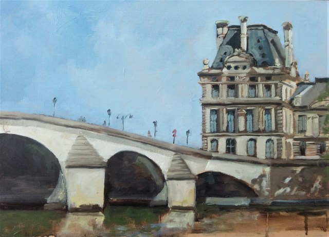 D’après la Repasseuse d’Edgar Degas, huile sur panneau, 30 x 50 cm, 2017