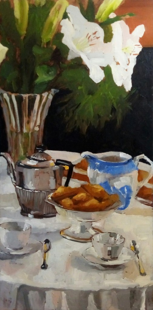 L’heure du thé, huile sur panneau, 60 x 40 cm, 2017