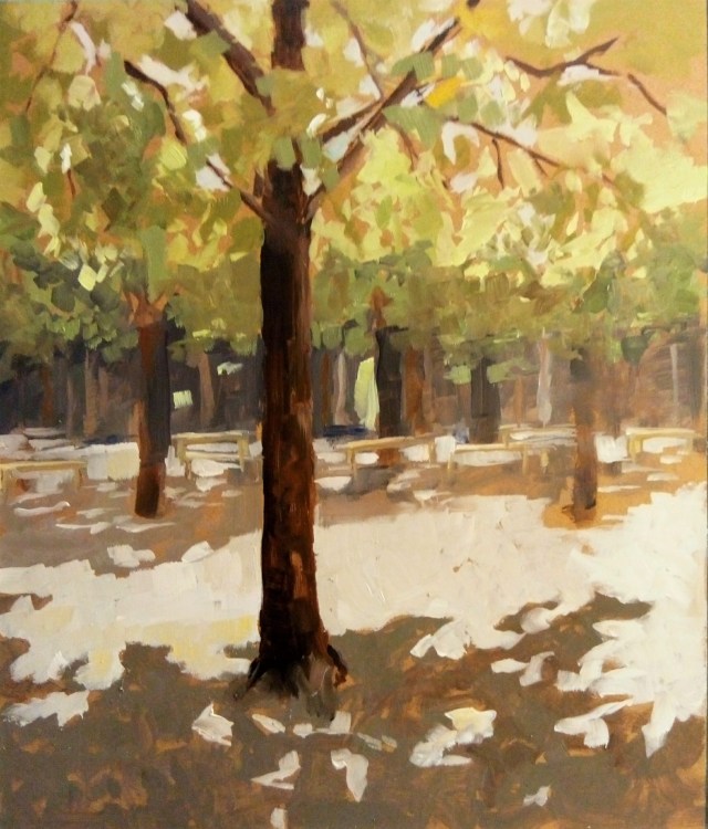 Rosier, huile sur panneau, 40 x 30 cm, 2017