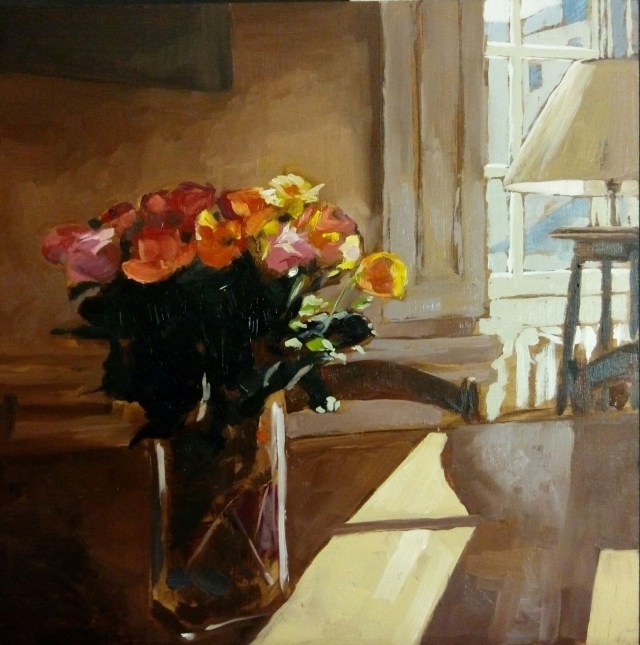 Bouquet de roses, huile sur panneau, 30 x 30 cm, 2016