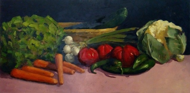 Légumes, huile sur panneau, 40×80 cm, 2017