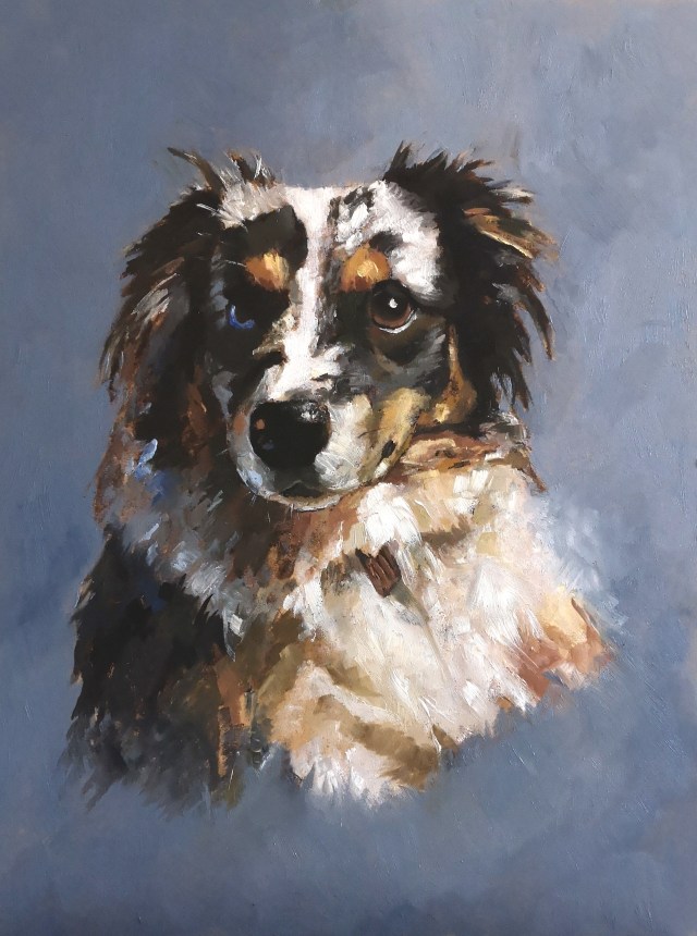 Portraits canins, huile sur panneau, 30 x 30 cm chaque portrait, 2017